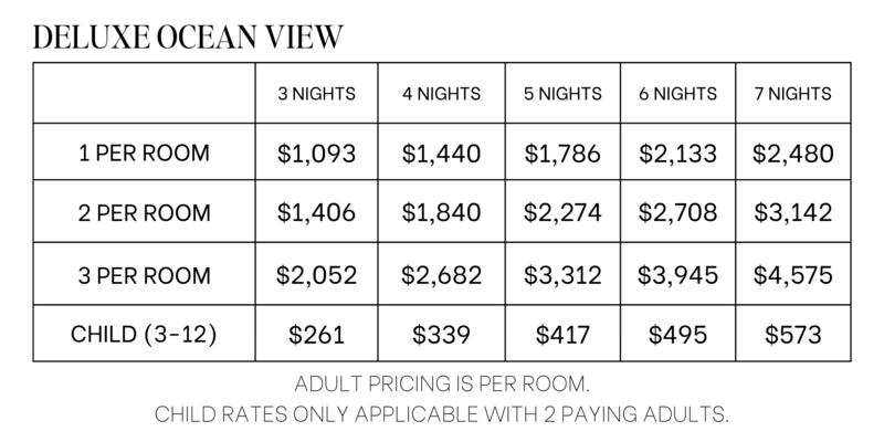 Package Pricing—Includes Accommodations and shared round-trip transportation.